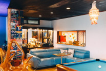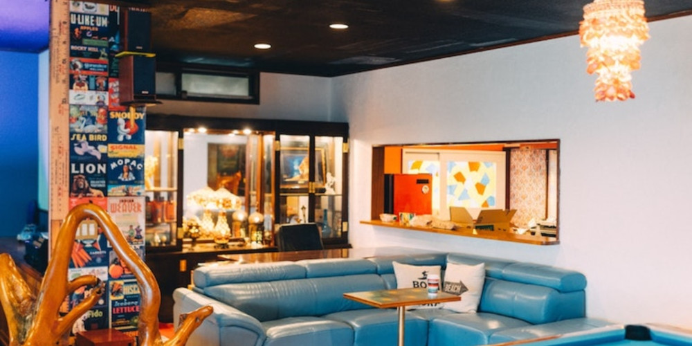 プロのアーティストによる壁画や海外から取り寄せた家具が彩るリビングは、まるで海外にいるかのような非日常空間。