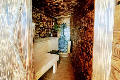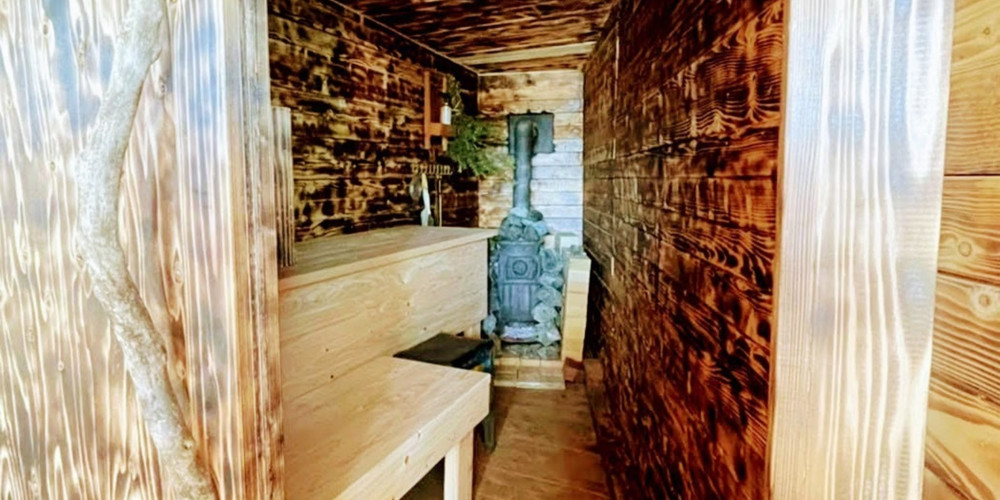 薪ストーブから放たれる遠赤外線の心地よい熱で、体の芯から温まる本格サウナ。