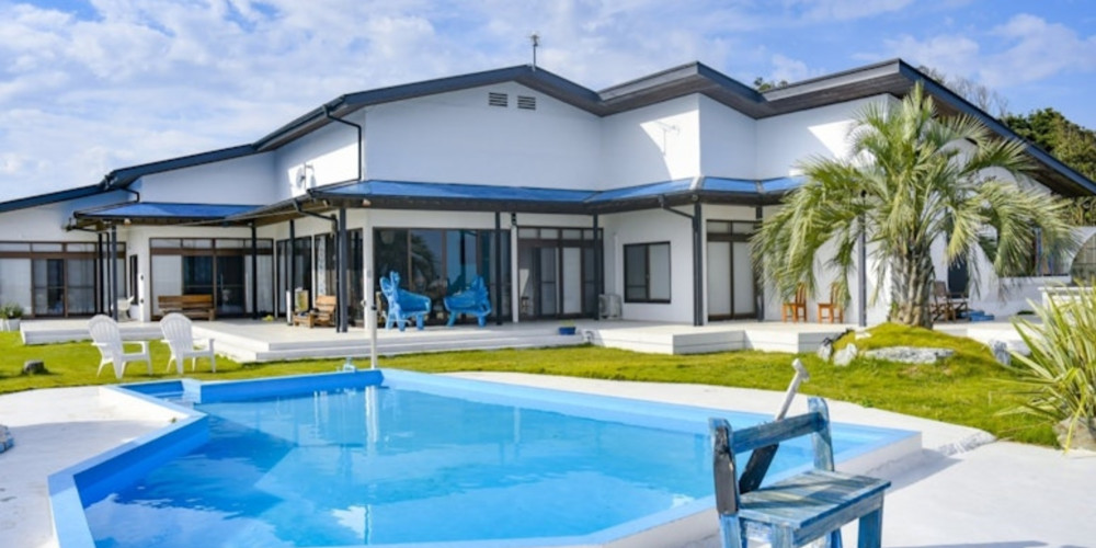 茨城県大洗エリアにある 180度水平線を見渡せるプール・サウナ・BBQ場・ビリヤード台付き海前リゾートの1日1組限定のホテル。