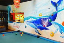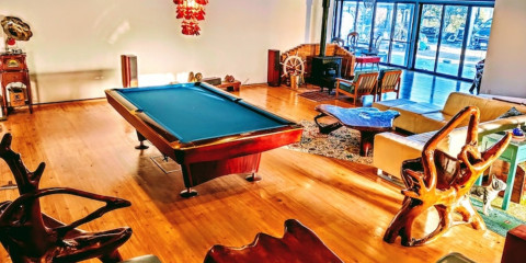 雨の日のリラックスタイムや、アクティビティの合間の休憩にも最適です。ビリヤードや映画鑑賞、ゲームなど、多彩な楽しみ方が可能。カラオケ設備もあり、グループでの滞在にもぴったりです。