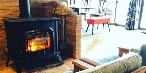 広々としたリビングには、ゆったりと座れる上質なソファと、薪のはぜる音や揺らめく炎が心を癒す薪ストーブをご用意。非日常を感じながら、心安らぐひとときをお過ごしいただけます。