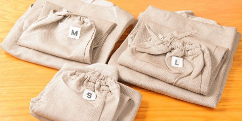 お部屋には作務衣をご用意しております。大人用はM、L、LLサイズがございます。