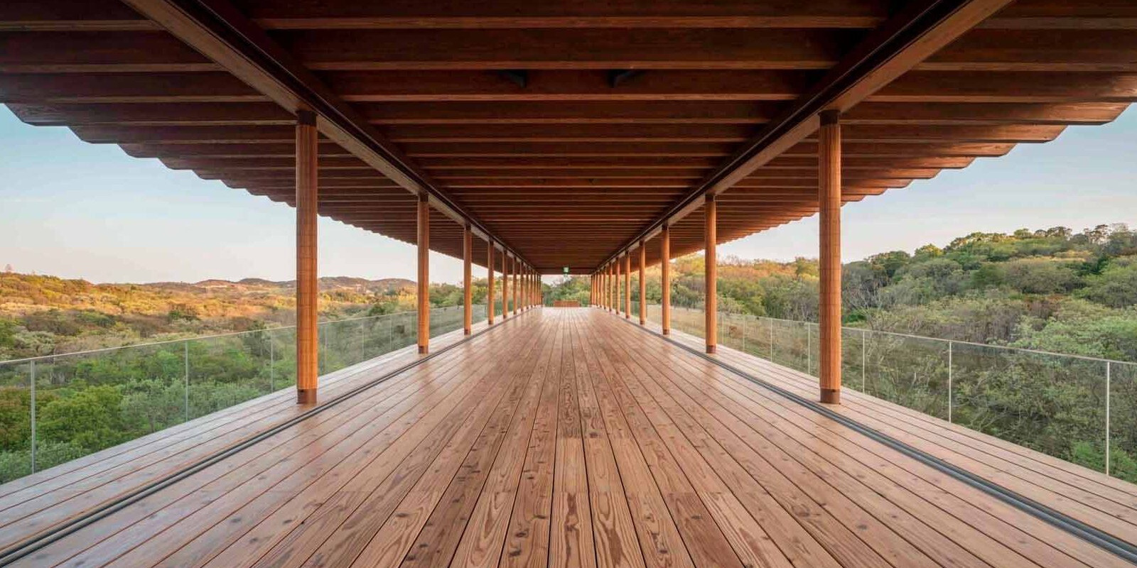 特に日本杉を組み合わせて作られた全長100mのウッドデッキでは、