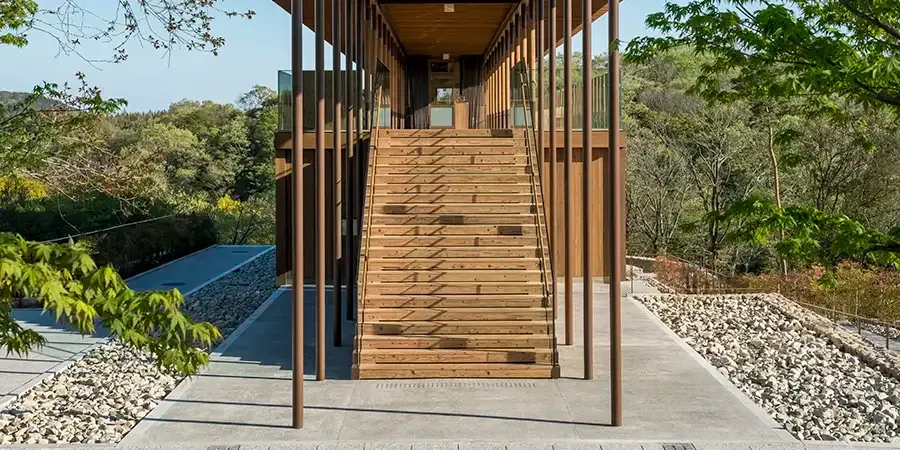 自然と調和した木造建築をお楽しください。