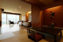 お食事は、贅沢にのんびりと「お部屋」または、当館の板前が腕を振るった、天ぷらなどのお料理をそのままお客様のテーブルへお運びする「和ダイニング」をお選びいただけます。