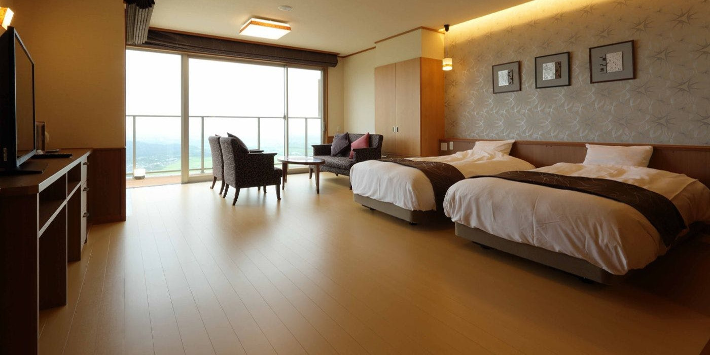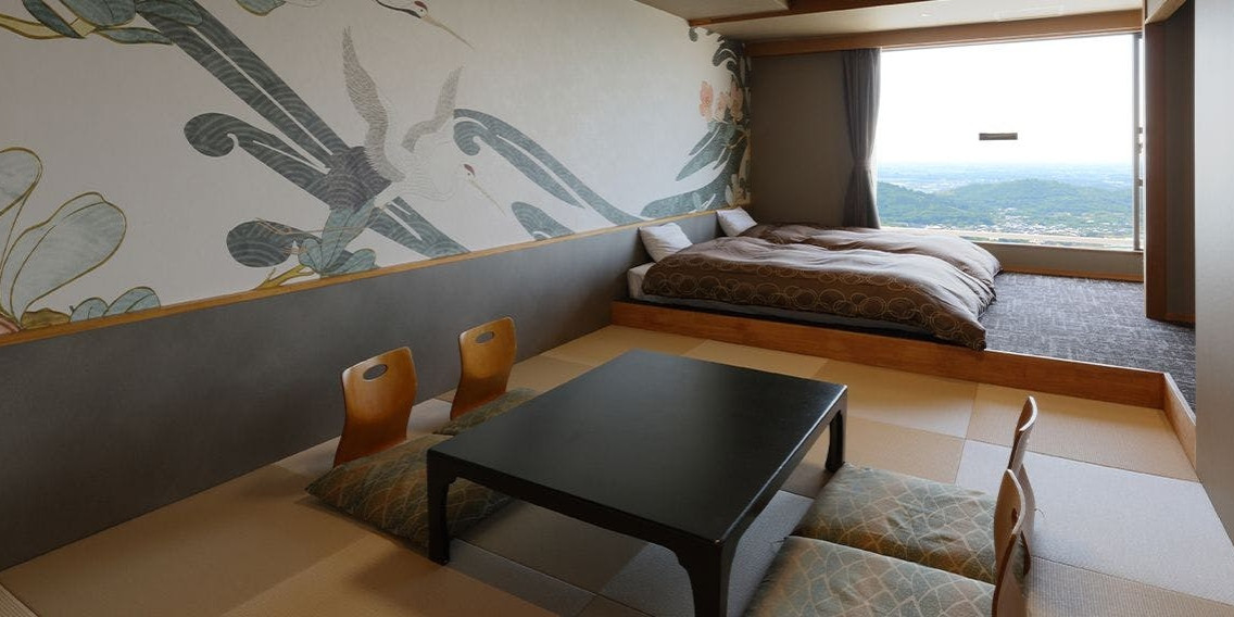 露天風呂付客室、筑波山側と夜景側の標準客室など、