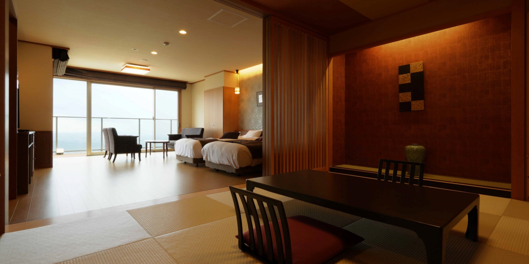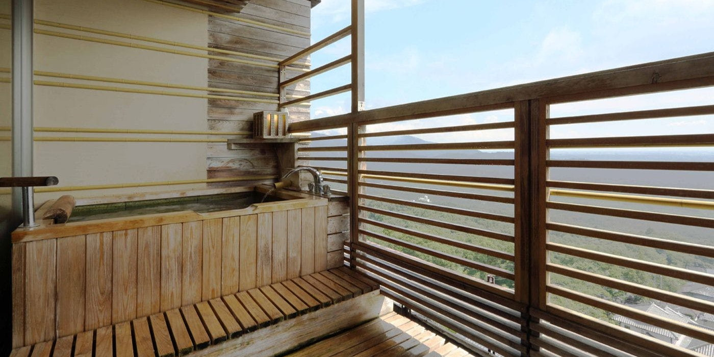 全室露天風呂付き客室。絶景を眺めながらごゆっくりお過ごしください。