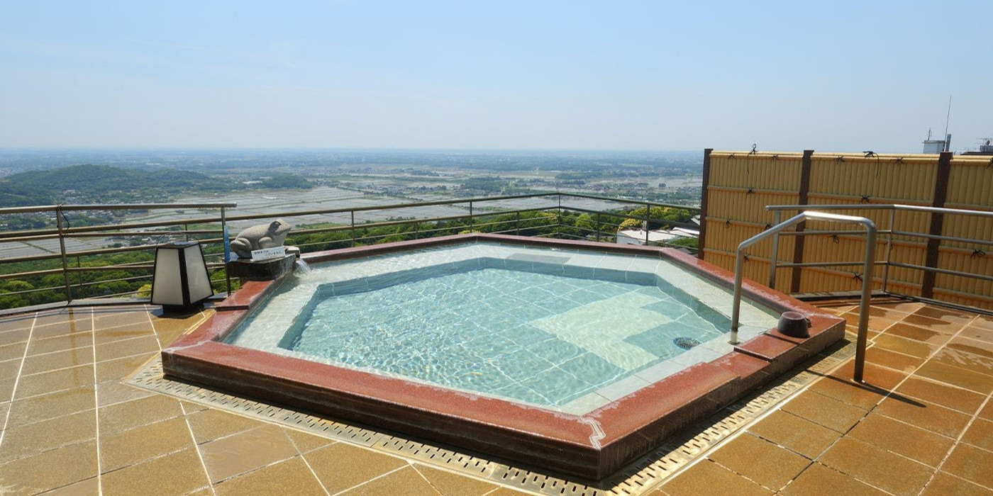 筑波の絶景を眺めながら温泉に浸かるという贅沢を味わえる、パノラマ露天風呂“雲上の湯”