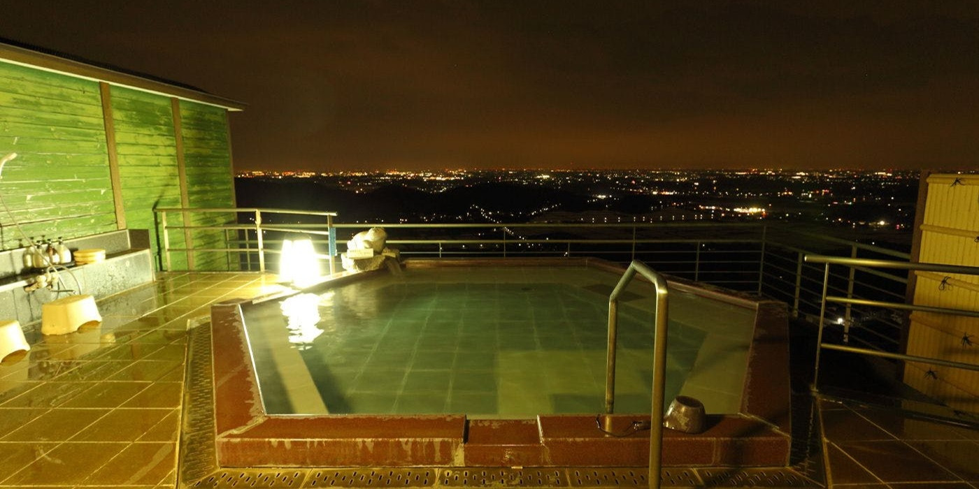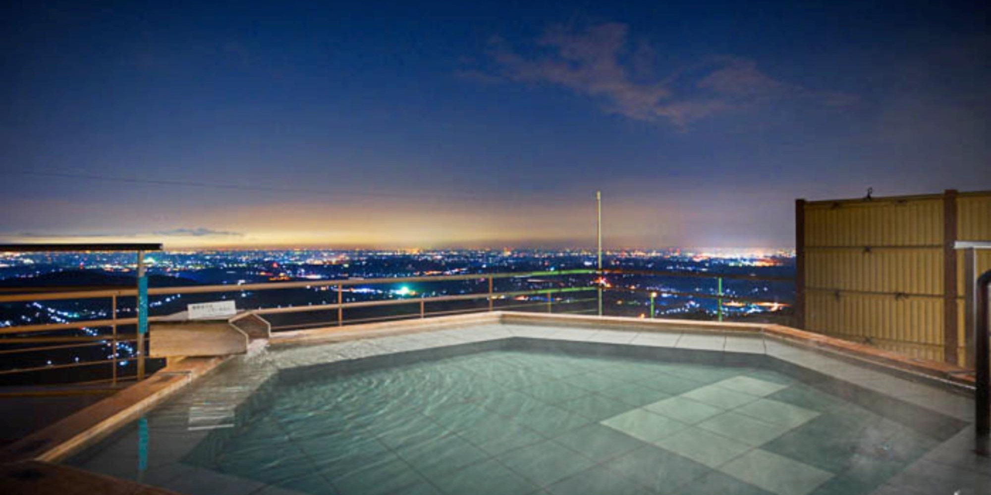 筑波山からの大パノラマ、夜景と富士山を望む露天風呂
