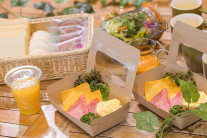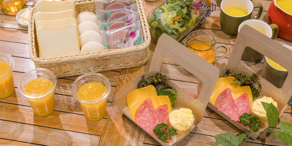 健康的なカラダは朝食から。地元の宝牧場のミルクパンで作るセルフサンドイッチや、