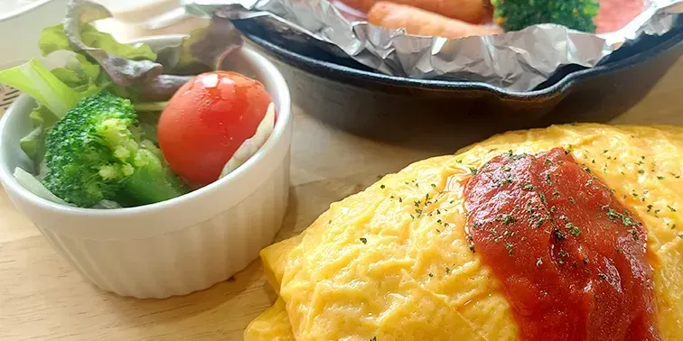 地産コシヒカリの米粉パンサラダなど、朝食にも地元食材を使用しつつ、健康にも配慮した朝食セットをご用意しています。