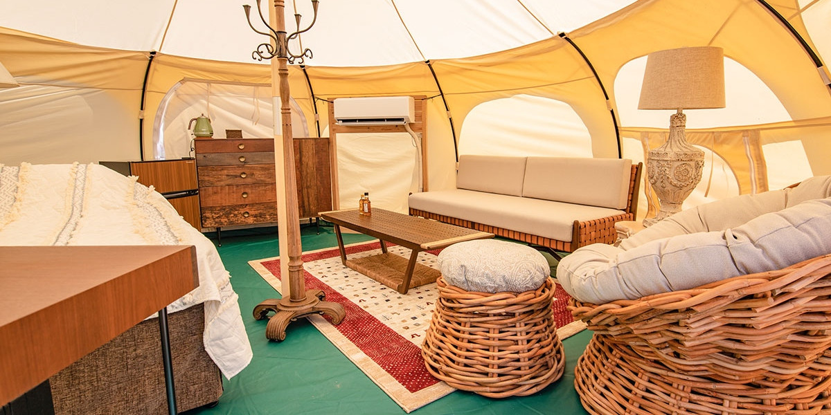 余裕を持ったテント配置や室内設計にこだわり、プライベートな空間を演出しています。