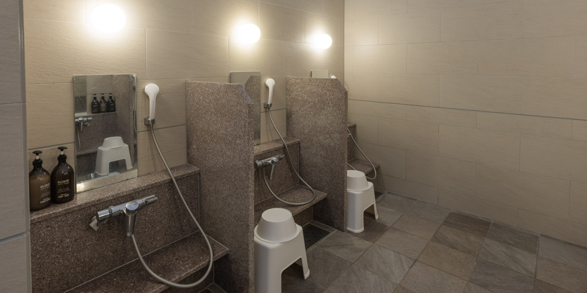 客室内には、シャンプー、コンディショナー、ボディーソープ、ハンドソープ、バスタオル、フェイスタオル、歯ブラシ、カミソリ、ヘアコーム、ヘアゴム、コットン&綿棒、湯沸かし器、マグカップ、ワッフルガウン(フリーサイズ)、ヘアドライヤー(キャビンのみ)をご用意しております。