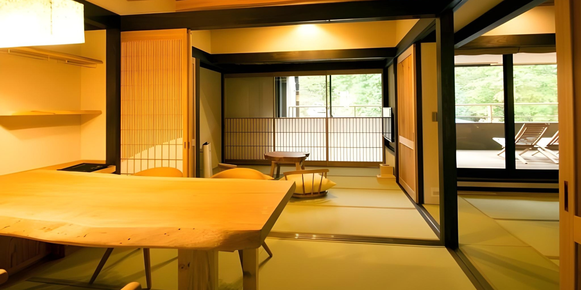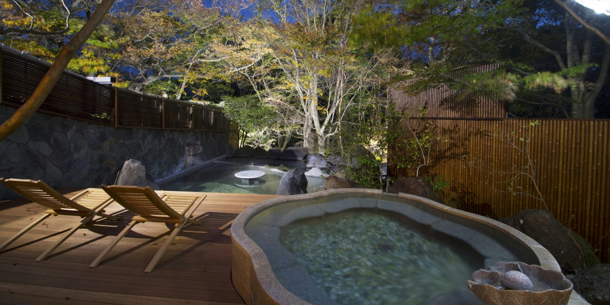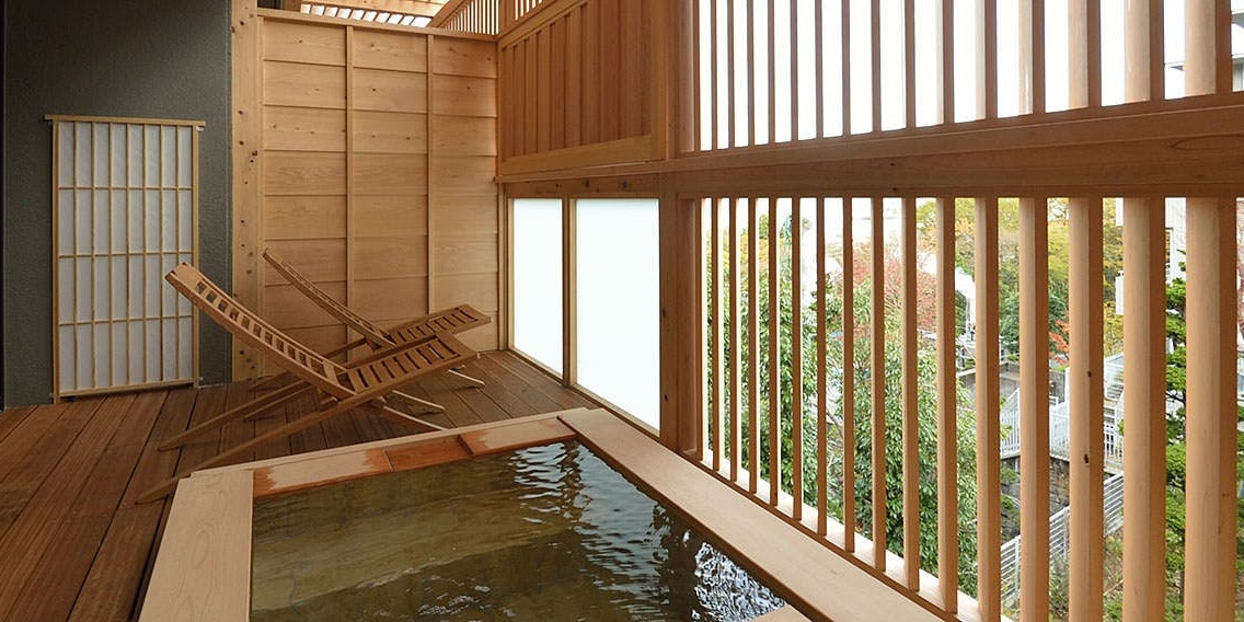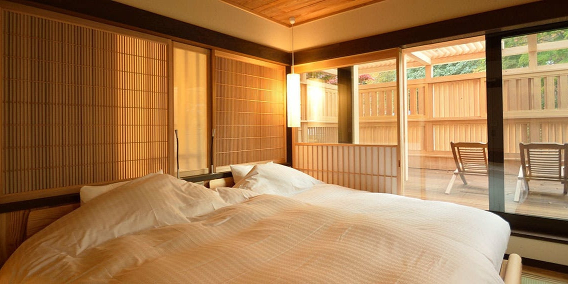 全室露天風呂付。箱根の隠れ宿で木と畳の感触を楽しむ