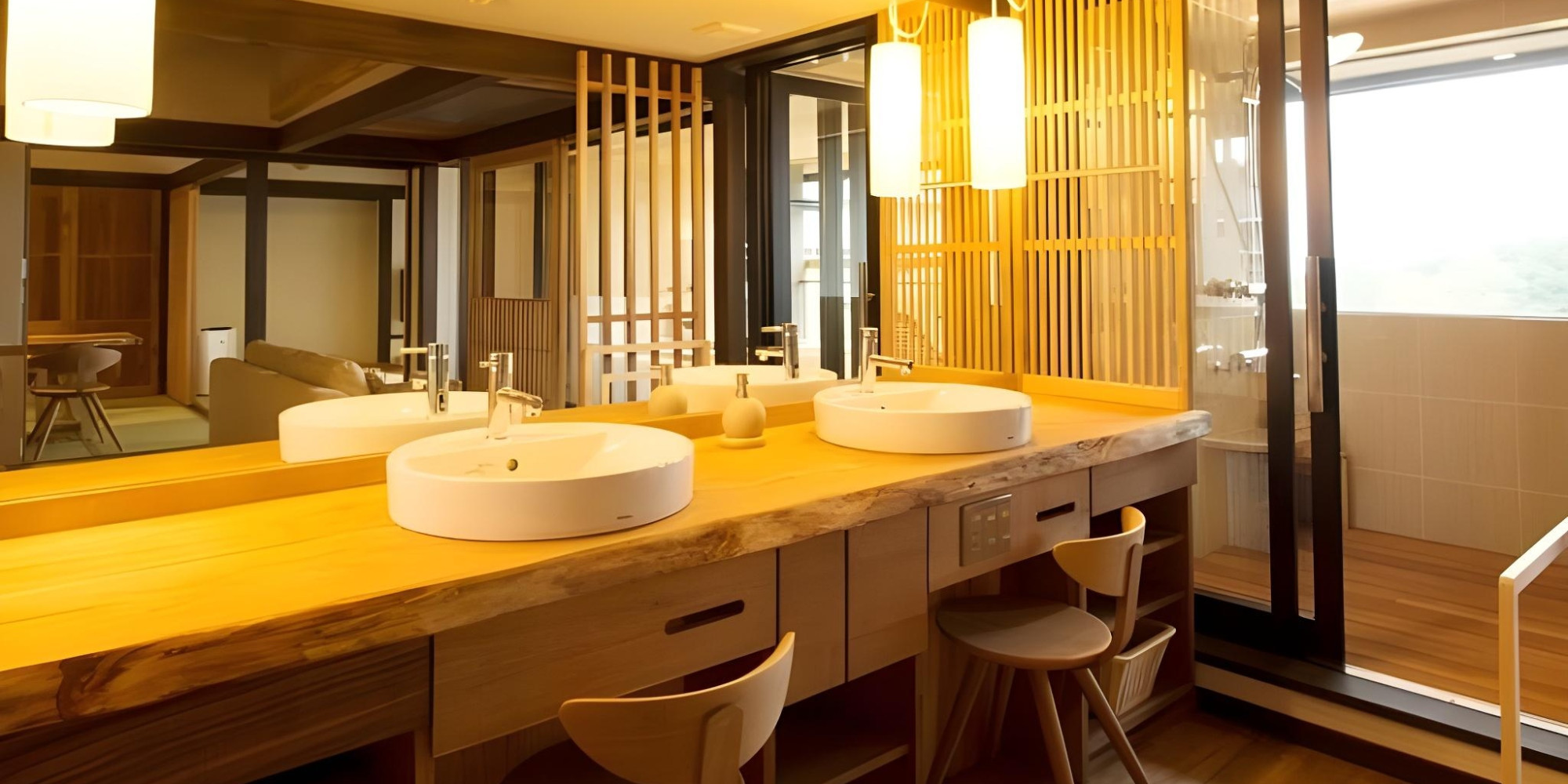 埋もれ木が用いられた脱衣所