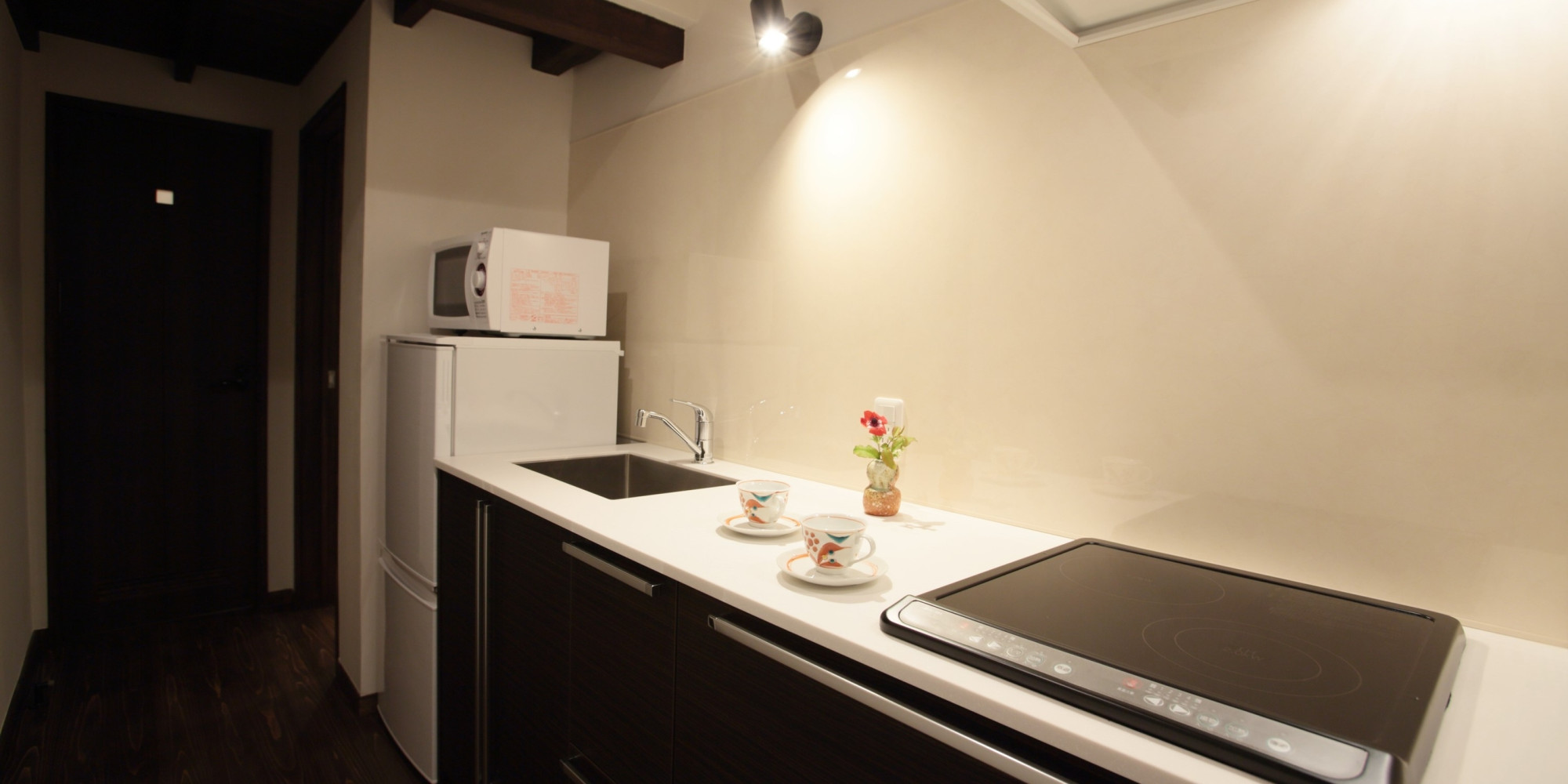 一階には清潔で現代的な設備の洗面、浴室、トイレ等、そしてIHキッチンを備えておりますので、お料理も出来ます。