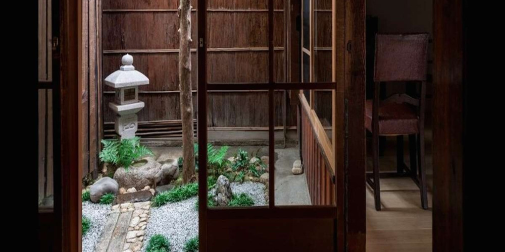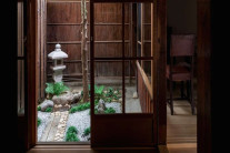 小さな坪庭を眺められるリビングは京都の風情を感じられます。