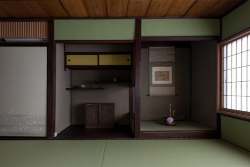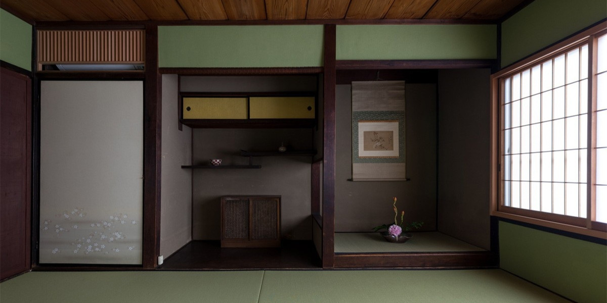 桜の木材を基調とし、井草の香りを感じられる和室。