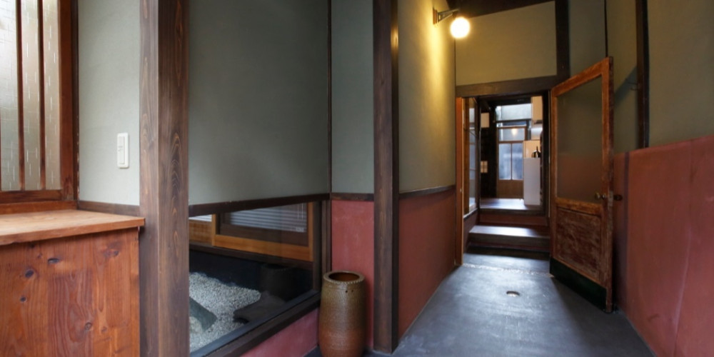 玄関開けるとすぐに見えるのは、昔の面影をそのまま残した京町家のつくり。