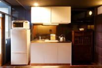 ・キッチン用品一式(フライパン、鍋、やかん、ボウル、ザル、まな板、包丁、お玉、フライ返し、ワインオープナー、ピーラー、シリアルボウル、平皿(小、大)、どんぶり、ティーカップ、湯呑、グラス、ワイングラス、カトラリー類(お箸、フォーク、スプーン、ナイフ)