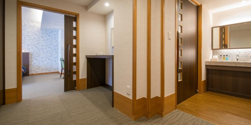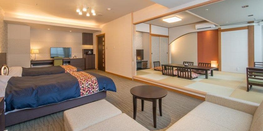 8畳の和室とツインベッドの洋室(26平米)のある和洋禁煙室です。
