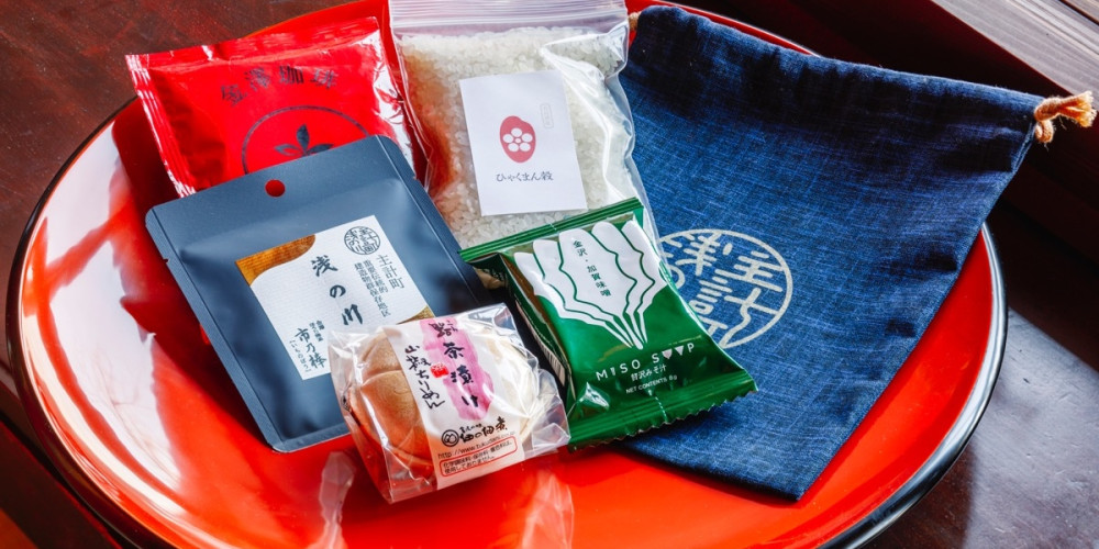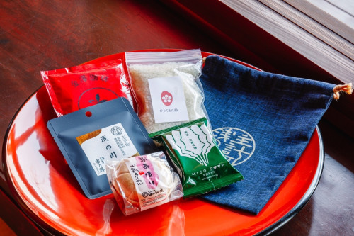 当宿では金沢の味覚を巾着に詰めたお茶漬けセットをご用意しております。