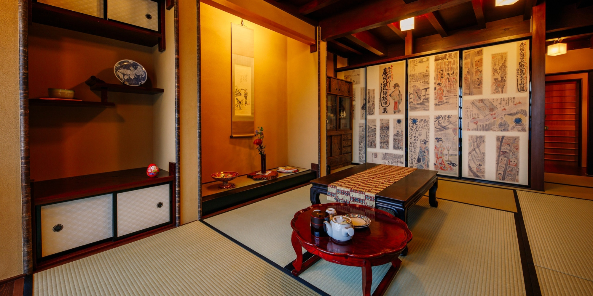 1階お部屋の襖には、木倉屋楳荘が描いた作品を取り込みました。