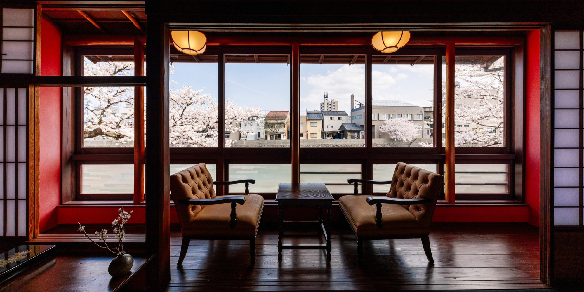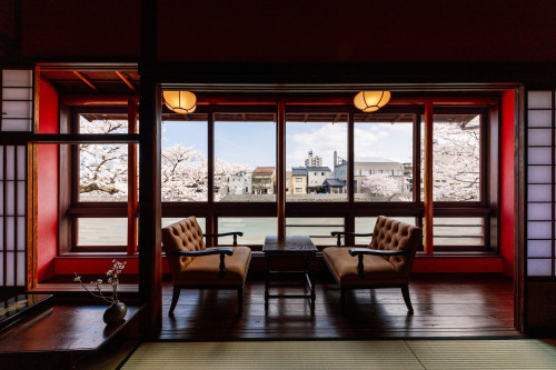 2階の窓の外には浅野川が流れ、四季折々の景色を望むことができます。
