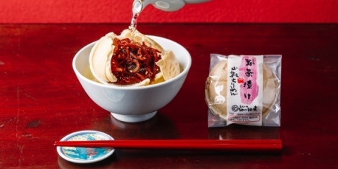 素材本来の美味しさを伝えるため、無添加の食品づくりこだわる佃煮専門店。最中に佃煮を詰めた器茶漬けは、割ってお湯を注ぐだけで簡単にお召し上がりいただけます。当宿の裏手には本店もございますので、ぜひお立ち寄りください。