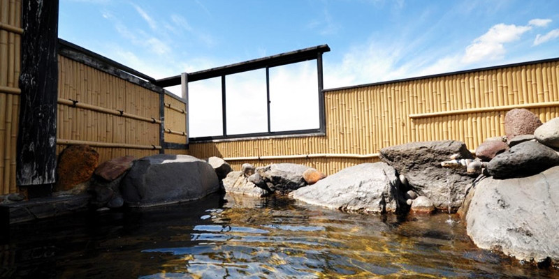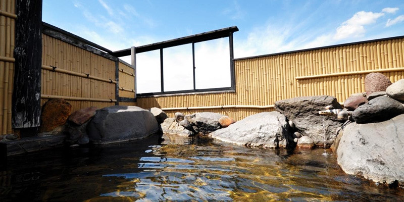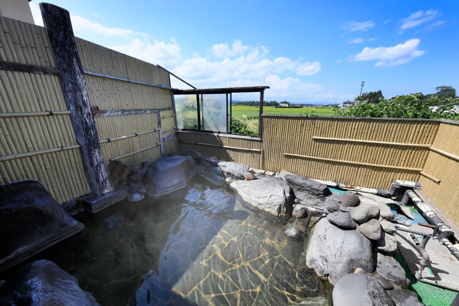 青森ヒバ造りの露天内湯。ヒバの香りに包まれてごゆっくりおくつろぎください。夕方16時~24時のご利用はご宿泊者様のみとなります。
