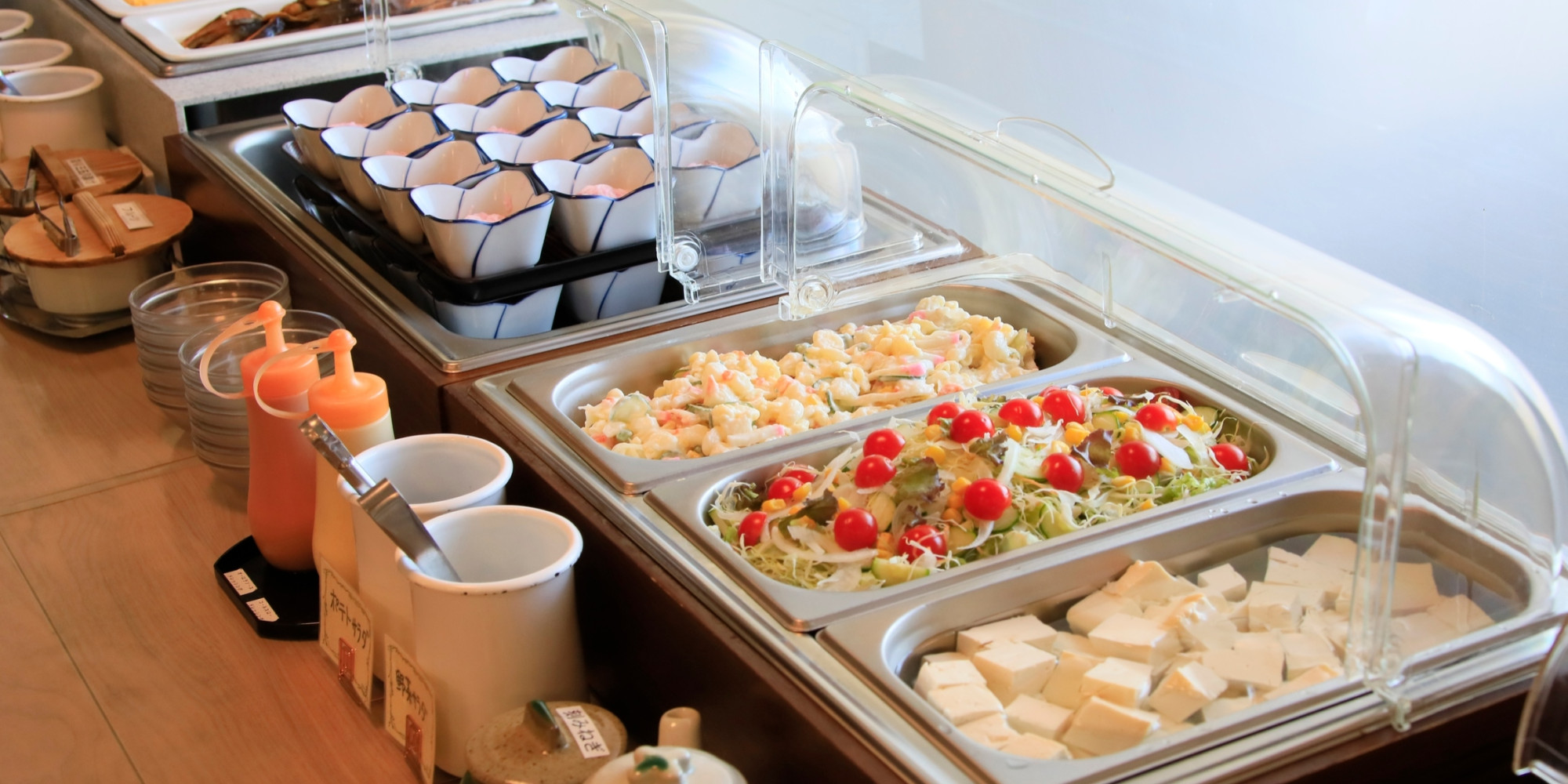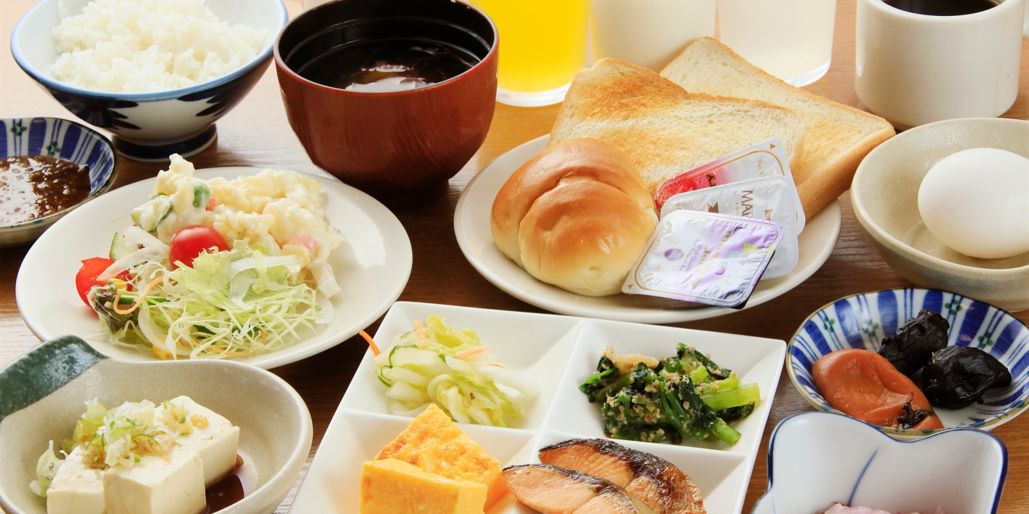 ご朝食は「かっちゃの手作りバイキング」をご用意しております。(かっちゃ=お母さん)
