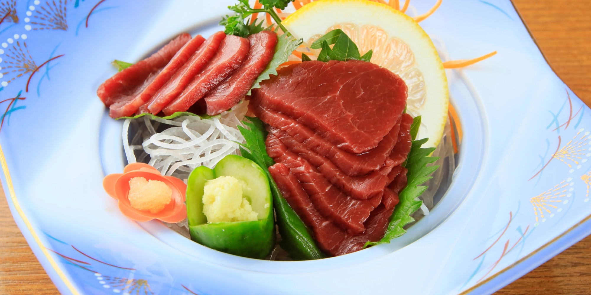 十和田の名産さくら肉をご堪能。馬肉はその色から「さくら肉」と呼ばれ、