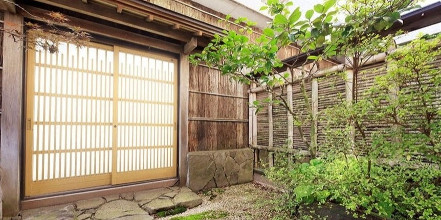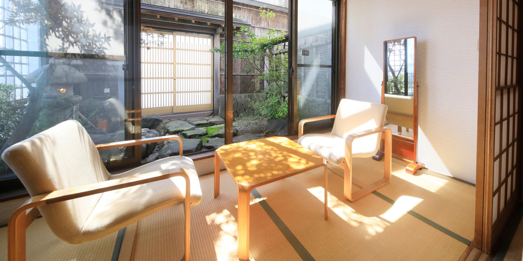 窓の外にはお部屋ごとに違う小さな庭園がございます。