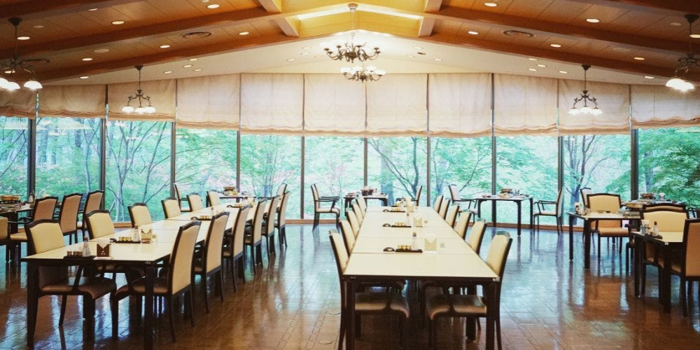 レストランでは、270°見渡せる窓からの景色と共に美味しいお食事をお楽しみいただけます。