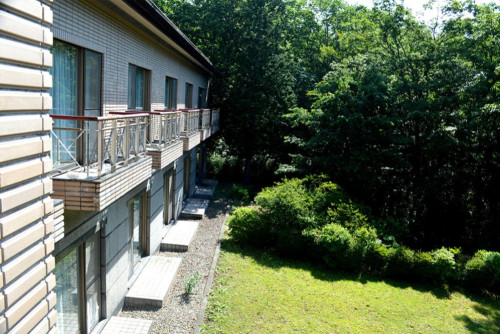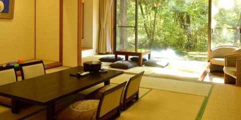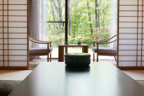 10帖の和室は、中庭を通して森の自然を見渡すことができ、