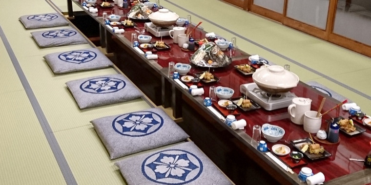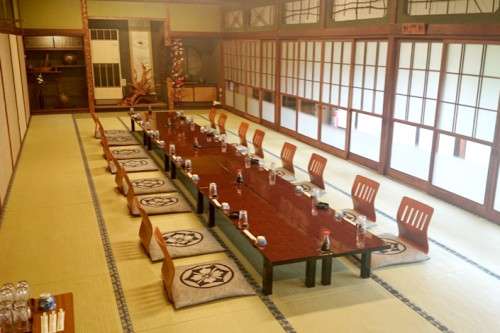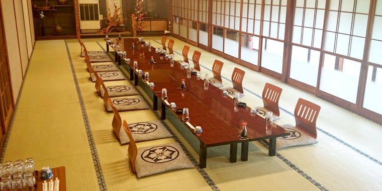 ゆっくりと寛いでいただける、足腰に負担の少ない掘りごたつ式のお部屋です。最大42名様まで。