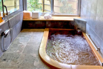 超音波龍紋石風呂は湧き水を沸かしており、一晩中入れます。