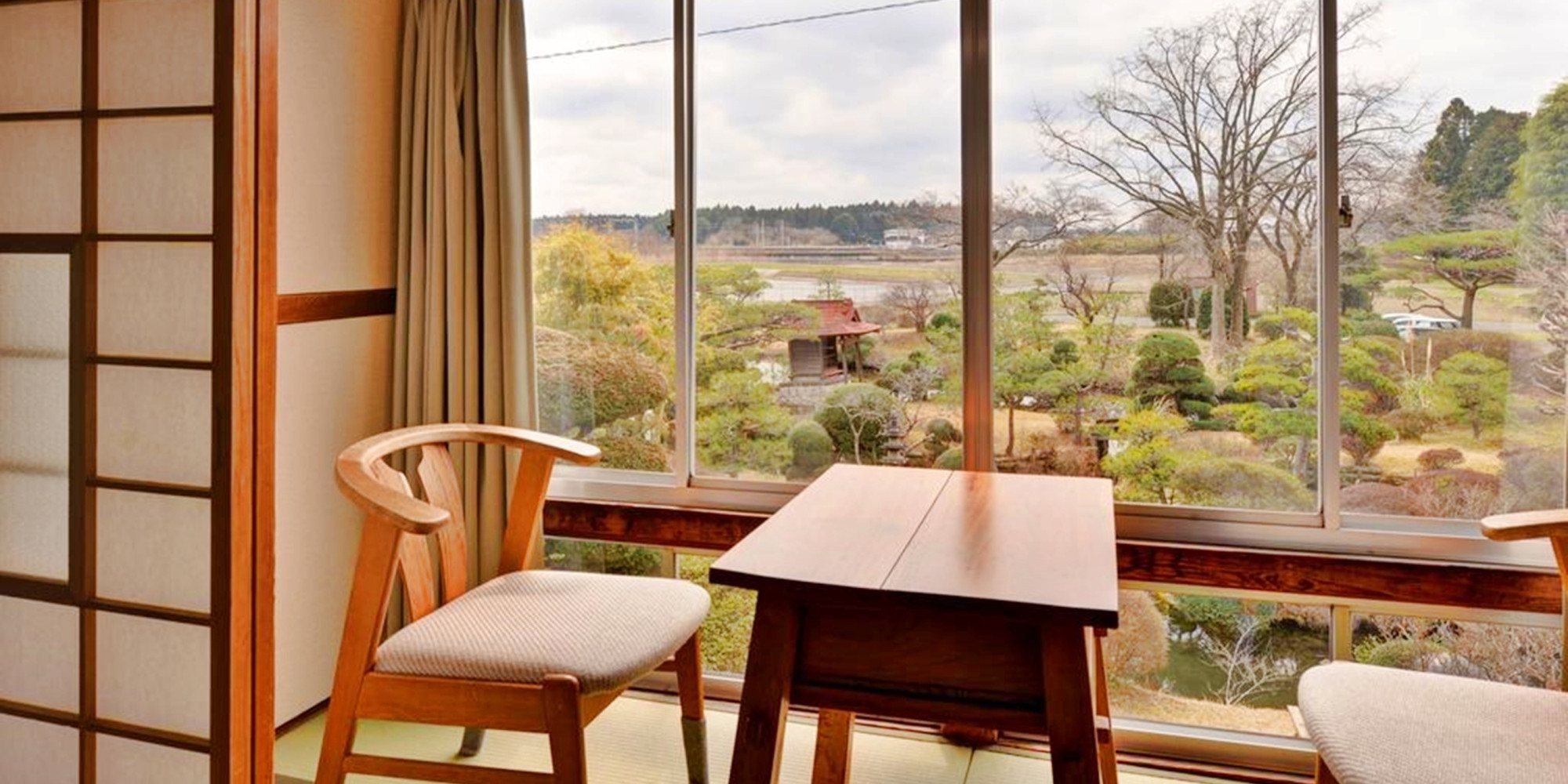 日本庭園を眺めながら、静かにのんびりとお寛ぎ頂けます。