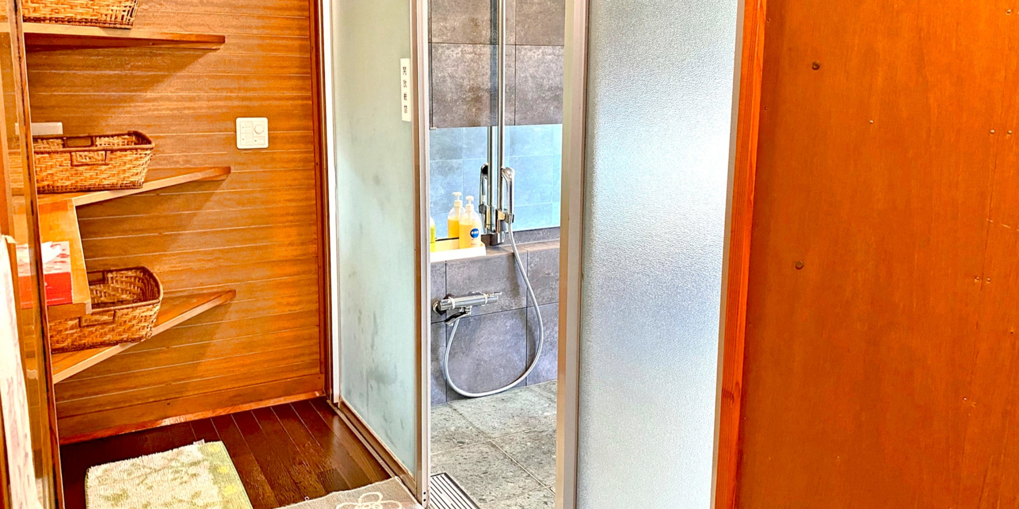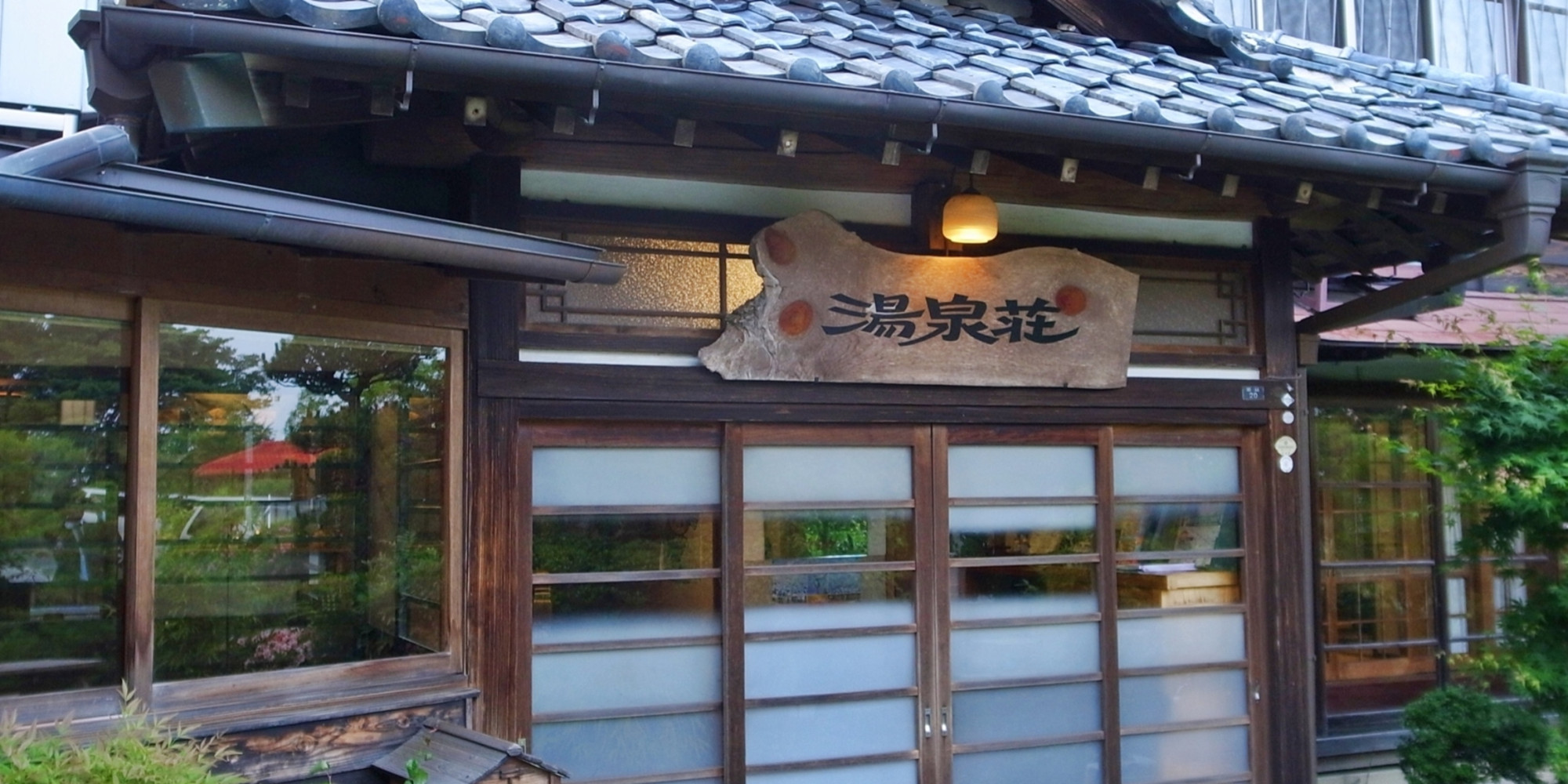 田園の中に建つ、鄙び湯(ひなび湯)。