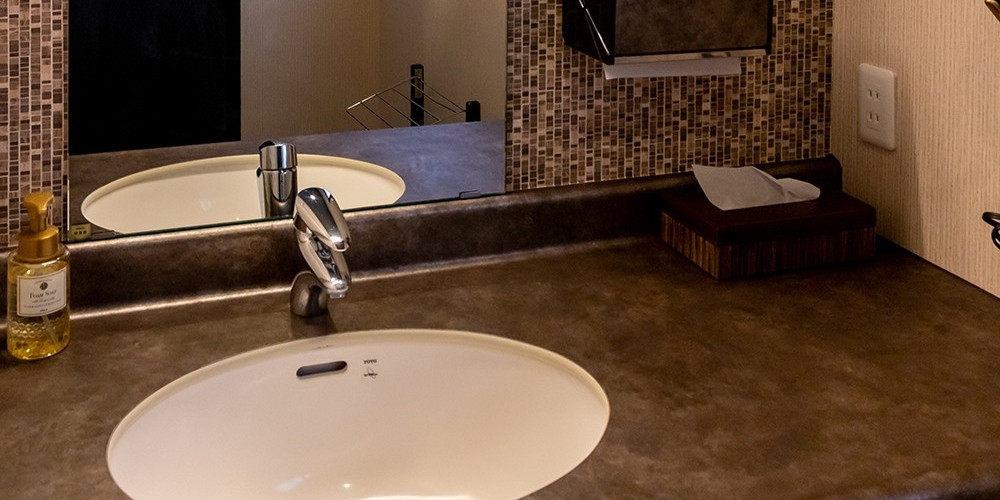 貸切風呂内に、フェイスタオル・歯ブラシ・使い捨てヘアーブラシ・使い捨てカミソリ・綿棒・クレンジング・乳液・シャンプー・コンディショナー・ボディーソープ・ティッシュペーパーがあります。