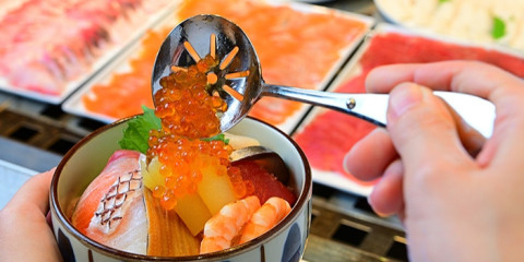 新鮮なお刺身を好きなだけ選んで、オリジナルの海鮮丼を楽しめる。