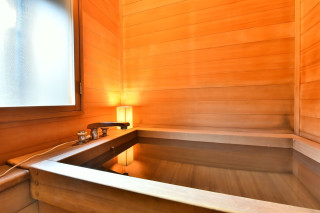 湯船から浴室まですべてヒノキで造られた贅沢なお風呂です。