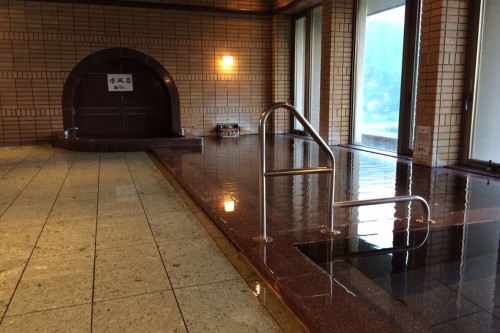 山々一望、自慢の美肌の湯を注ぐ展望大浴場。湯船につかると