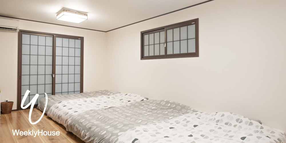 こちらのお部屋に予備寝具が3セットあり寝室としてもご利用いただけます!