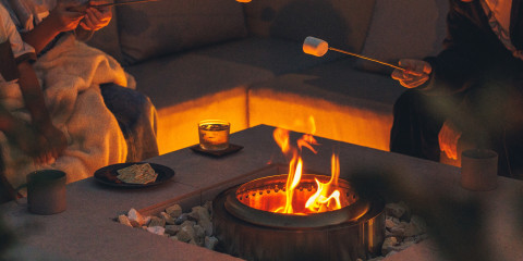 夕日が沈む中、火を灯したBBQパーティーで思い出に残る夜を。