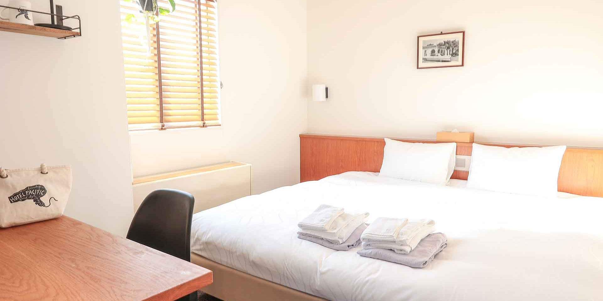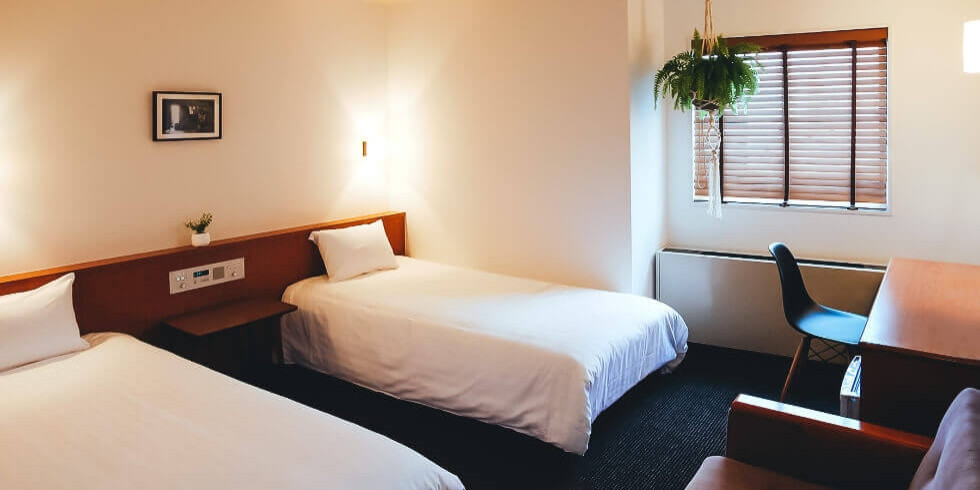 白と木目を基調としたモダンな客室はシンプルで落ち着いた空間です。