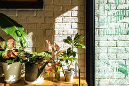 白いレンガとインドアグリーンが印象的なロビーは、街の喧騒を忘れさせる心地よい空間。