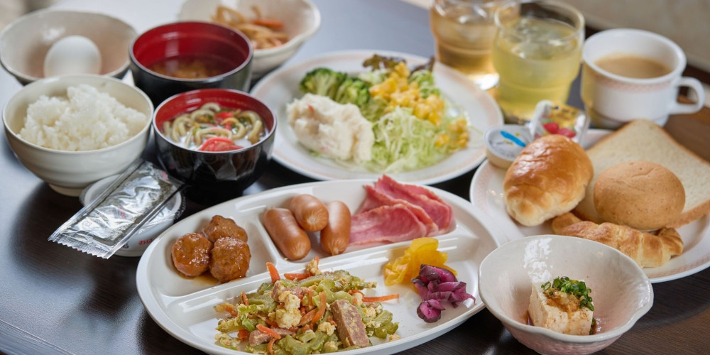 私共ホテルの朝食では沖縄の家庭料理をお客様に 召しあがっていただきたいと考え、