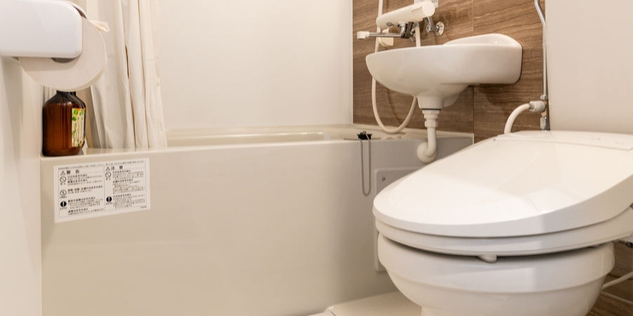 お部屋に完備されたユニットバスは、コンパクトながらも必要なものがすべて揃った機能的な空間。