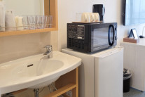 冷蔵庫、電子レンジ、洗濯機、ガス乾燥機を完備。